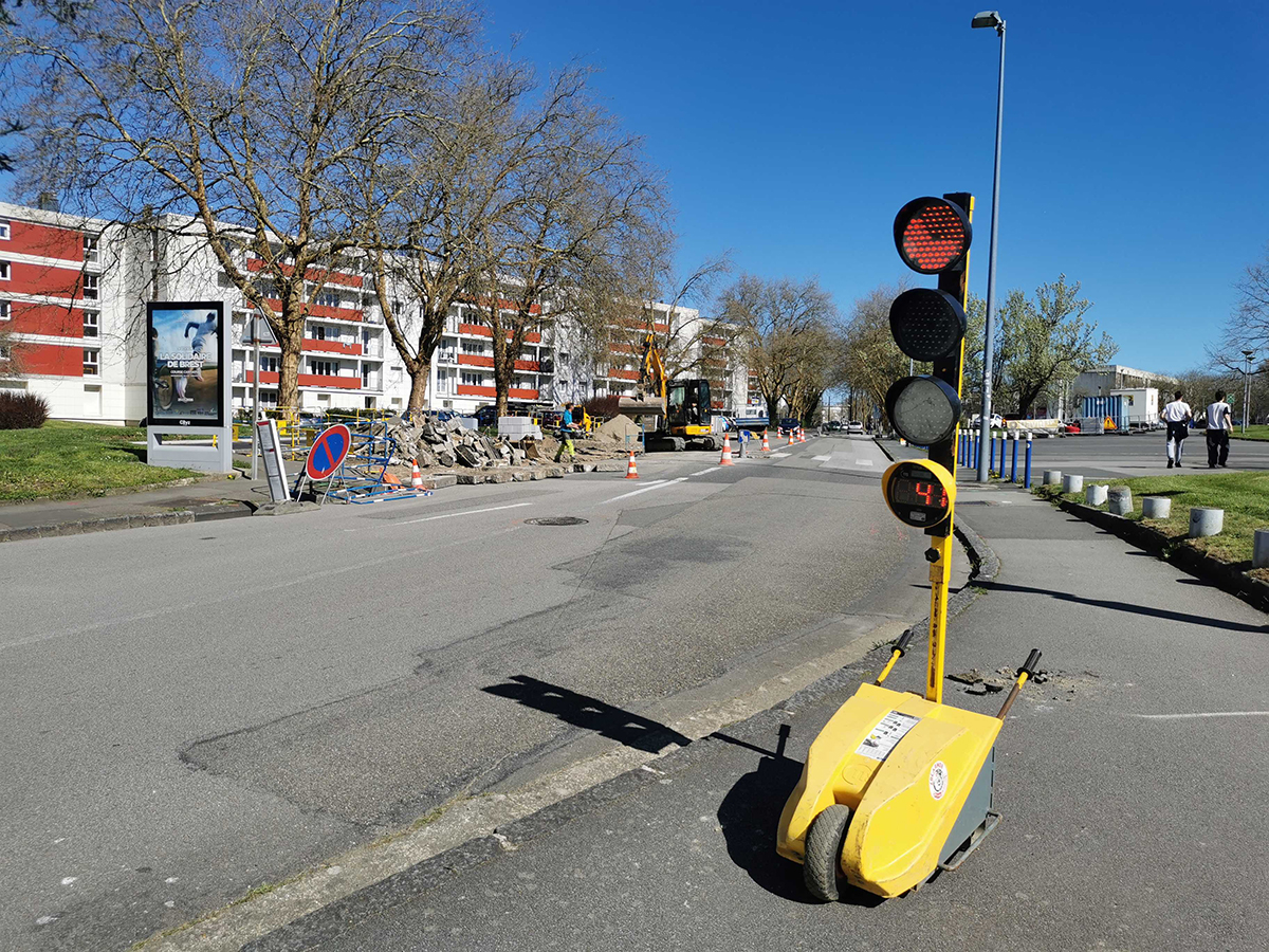 Avis aux automobilistes ! Un feu de chantier temporaire est mis en place pour organiser une circulation alternée. Il faudra donc prévoir un trafic moins fluide qu'à l'ordinaire aux abords du chantier.
