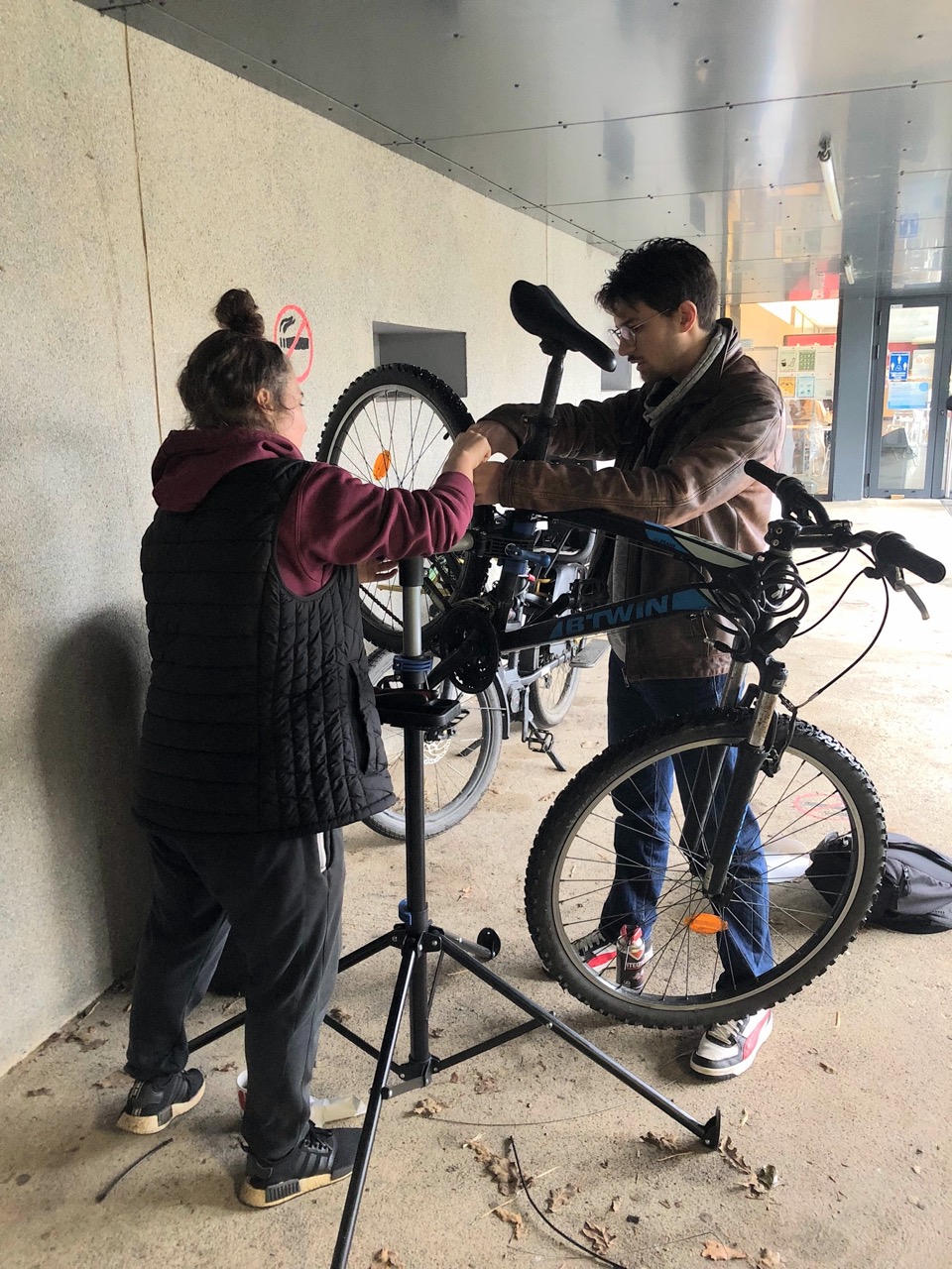 Constituée de personnels, d’étudiantes et d’étudiants, elle propose des services comme l’atelier d’auto-réparation de vélo ou le prêt de vélos.