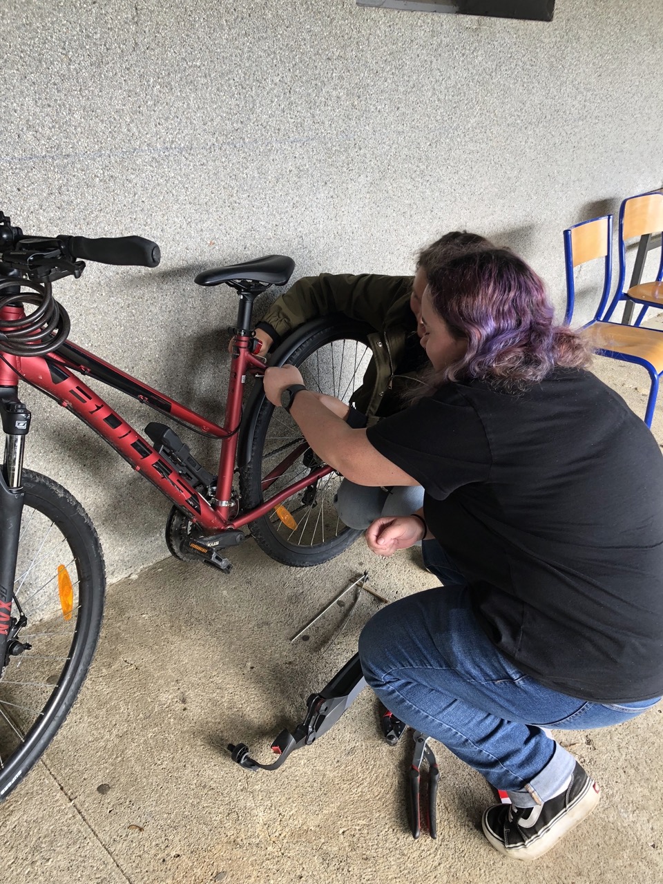 Pour répondre aux besoins grandissants de l'atelier d'auto-réparation, l'équipe de bénévoles a suivi un cycle de formation sur la mécanique vélo auprès de l'association Brest à Pied à Vélo. Deux groupes (débutant et avancé) ont bénéficié chacun de 6h de formation sur les divers points que l'on peut aborder en atelier : révision générale, réglages des freins, réglages des vitesses, potence, pédalier... etc.